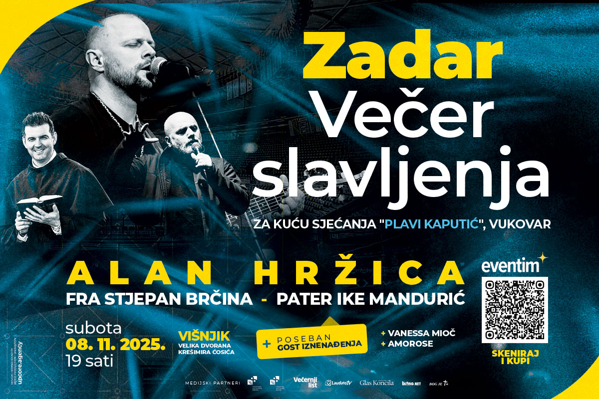 ‘Večer slavljenja’ na kojoj nastupaju Alan Hržica, Amorose i Vanessa Mioč održava se u subotu, 8. studenog 2025., s početkom u 19 sati.