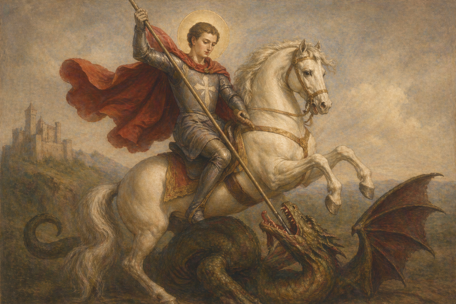 Najpoznatiji je po predaji u kojoj pobjeđuje zmaja, što simbolizira pobjedu dobra nad zlom i vjere nad strahom.